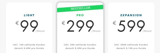 Je nach Anbieter sind die abzurechnenden Kunden begrenzt. Sofern Sie gerade einen Service neu starten, haben Sie eventuell noch nicht viele Kunden. Dann macht ein günstiger Tarif Sinn. Sollten Sie jedoch nur das Abrechnungssystem für einen bestehenden Service anpassen wollen, überlegen Sie sich, wie viele Nutzer Sie derzeit haben und mit welchem Wachstum Sie planen.
