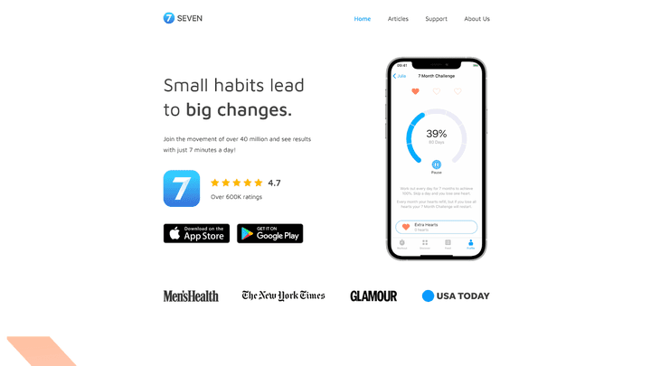 Seven: Die 7-Minuten-App basiert auf dem Konzept von kurzen, intensiven Workouts, die in nur sieben Minuten abgeschlossen werden können.