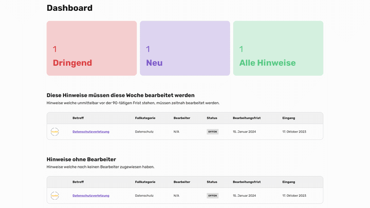 Sehr nützlich, um dein Case Management laufend zu überprüfen und zu optimieren. Das ist vor allem dann interessant, wenn du Fälle gemeinsam im Team betreust, z. B. als Wirtschaftsprüfungs-Gesellschaft oder als Compliance-Manager:in mit mehreren Mandant:innen.