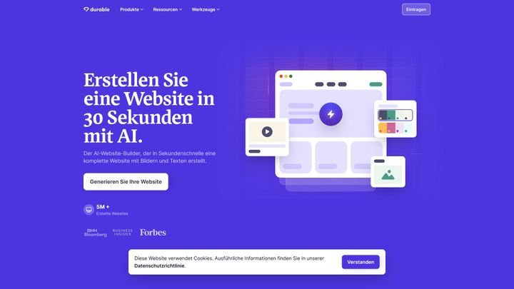 Alternativen: Für sehr simple Seiten (auf Deutsch) ist auch die KI von Jimdo gut geeignet. Auch Durable und Paceways sind dank ihrer Schnelligkeit eine gute Wahl.
