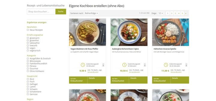 Bei Anbietern wie Tischline oder My Cooking Box könnt ihr euch im Shop aus vielen Gerichten eure ganz individuelle Box ohne Abo zusammenstellen