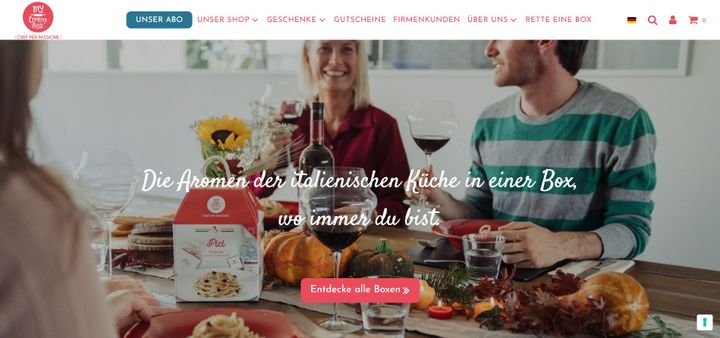 Bei My Cooking Box wählt ihr aus einem großen Sortiment an italienischen Hauptgerichten, Snacks, Desserts und sogar Weinen. Auf den Tisch kommen Pasta, Suppen, Risotto und viele andere authentisch italienische Gerichte. Auch Boxen für 2-Gänge-Menüs hat My Cooking Box im Angebot. Im Shop habt ihr absolute Freiheit und könnt aus allen Gerichten wählen. Im Abo dagegen bekommt ihr einmal pro Monat eine Box mit 3 Überraschungsgerichten. Spannend: Alle enthaltenen Zutaten und Produkte sind Made in Italy.