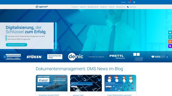 agorum core ist eine deutsche Lösung, die sowohl ein Dokumentenmanagement als auch ein ECM, also ein Enterprise Content-Management beinhaltet. Die Software gibt es auch als kostenlose Open-Source-Version und läuft auf Windows sowie Linux-Servern.