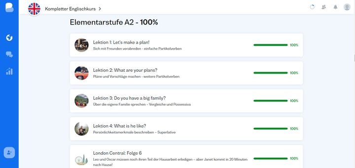 Busuu erreicht damit das Niveau von offiziellen Sprachschulen wie Lingoda. Auch Babbel ist nicht weit entfernt; in einigen Sprachen (z. B. Französisch oder Italienisch) hat Busuu sogar mehr Inhalte auf dem B2-Niveau (teilweise auch auf C1-Niveau) zu bieten – auch wenn Babbel dich hier zumindest auf dem Papier aufs Niveau C1 bringt.