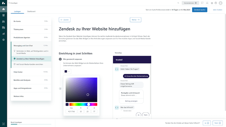 Aber das ist bei einer so umfangreichen Plattform wie Zendesk Suite mit mehreren Kanälen und integriertem Ticketsystem auch einfach der Sache an sich geschuldet.